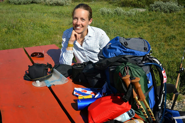 Det var deilig å sove i seng, men litt oppskrytt. Jeg sover faktisk bedre i teltet. Vi tok en veldig langsom morgen der jeg sydde til superundertøyet mitt så det passer Queen som knottbeskyttelse og buksa mi som holder på å revne i skrittet. Føttene er fremdeles hovne og ømme etter gårsdagen.